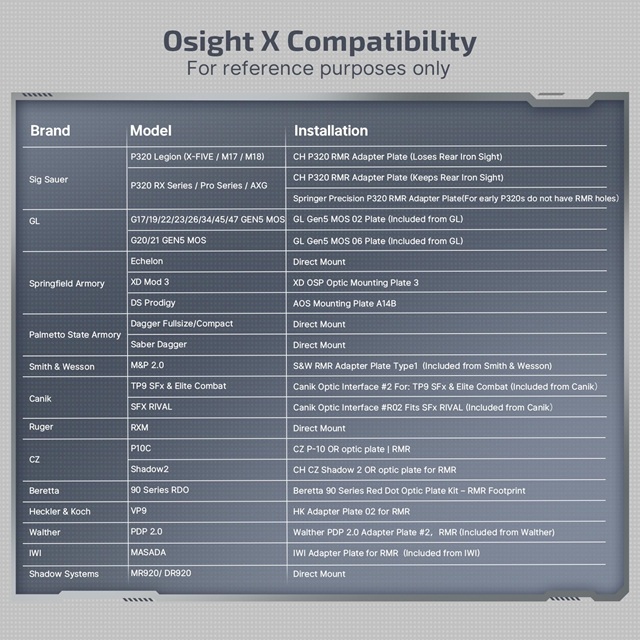 Olight Osight X je otvoreni refleksni crveni točkasti nišan za pištolje, s višenamjenskim Multi-Reticle sustavom: precizna 3 MOA točka za točnost, 32 MOA krug za brzo hvatanje meta i njihova kombinacija za uravnotežene bliskog-do-srednjeg dometa sukobe.